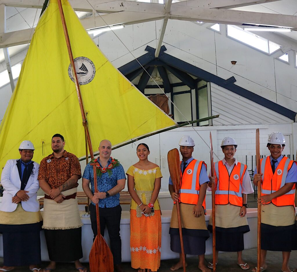 The school was blessed with presence of the Deputy Head of the European Union Delegation to the Pacific Nereo Penalver Garcia to mark the arrival of the “Taha Pe” a 7m fibre class doubled hulled vaka better known as the kalia to support the Day Skipper & Traditional Voyaging Program.